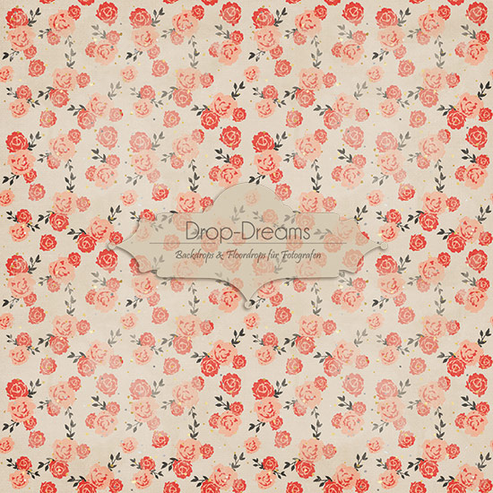 Wunderschöner blumiger floraler Fotohintergrund mit kleinen roten Rosen als Basis für professionelle, wunderschöne Foto-Sets & Foto-Kulissen.